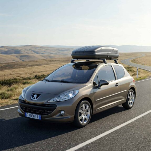 La Peugeot 207 est une voiture compacte, mais l’ajout d’un coffre de toit permet d’emporter tout ce dont vous avez besoin, même pour des longs trajets. Ces solutions de rangement supplémentaires s’installent facilement sur les barres de toit et sont conçues pour garantir un transport sécurisé.