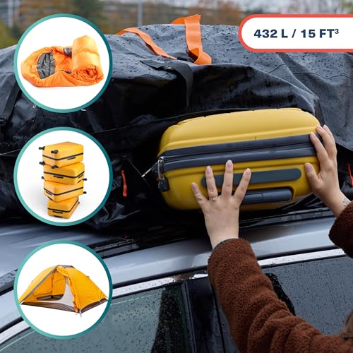 Avec sa capacité impressionnante de 430L, ce sac de toit offre amplement d’espace pour transporter tous vos indispensables, des valises aux sacs de couchage, en passant par les équipements sportifs ou les jouets. Plus besoin de limiter vos bagages : ce coffre souple est parfait pour des séjours en famille, des virées entre amis ou même des longs voyages.