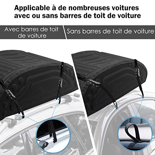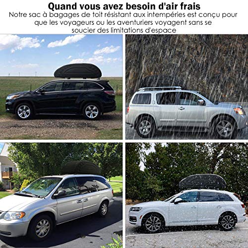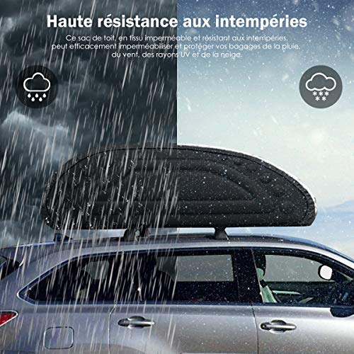 Avec une capacité de 400 litres, ce coffre de toit pliable est parfait pour accueillir vos valises, équipements de camping, sacs de sport ou autres objets encombrants. Sa conception étanche, comprenant un tissu imperméable avec revêtement PE mousse, assure une protection maximale contre les éléments. Que ce soit sous la pluie battante, en pleine tempête de neige ou sur des routes poussiéreuses, vos affaires restent parfaitement au sec et propres grâce notamment à sa fermeture éclair renforcée avec rabat protecteur.